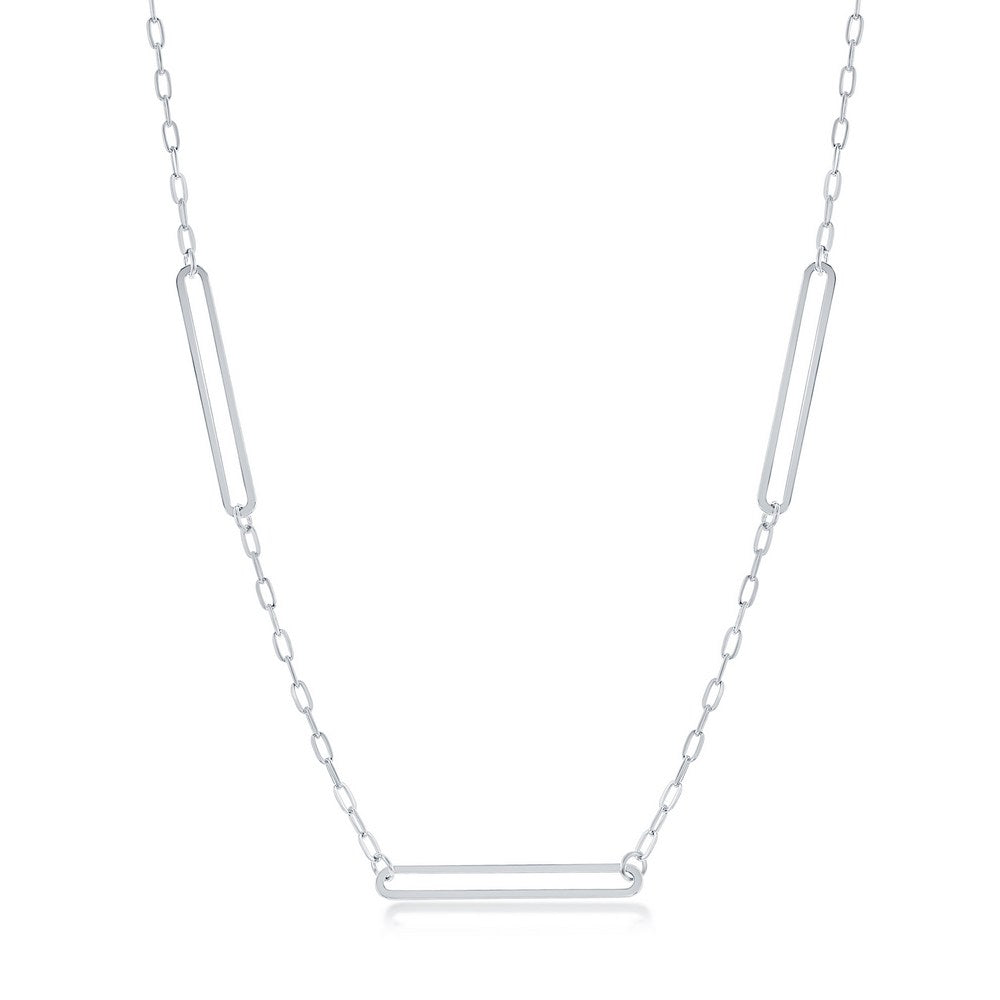 Sterling Silver, 3 Paperclip Station Necklace