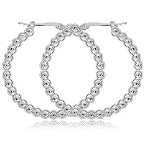 Sterling Silver Beaded Design Medium Hoop Earrings