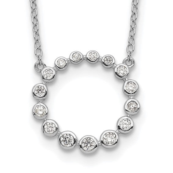 Sterling Silver Bezel Set Cz Circle Necklace On An Adjustable 16-18 Inch Chain With A Lobster Style Clasp