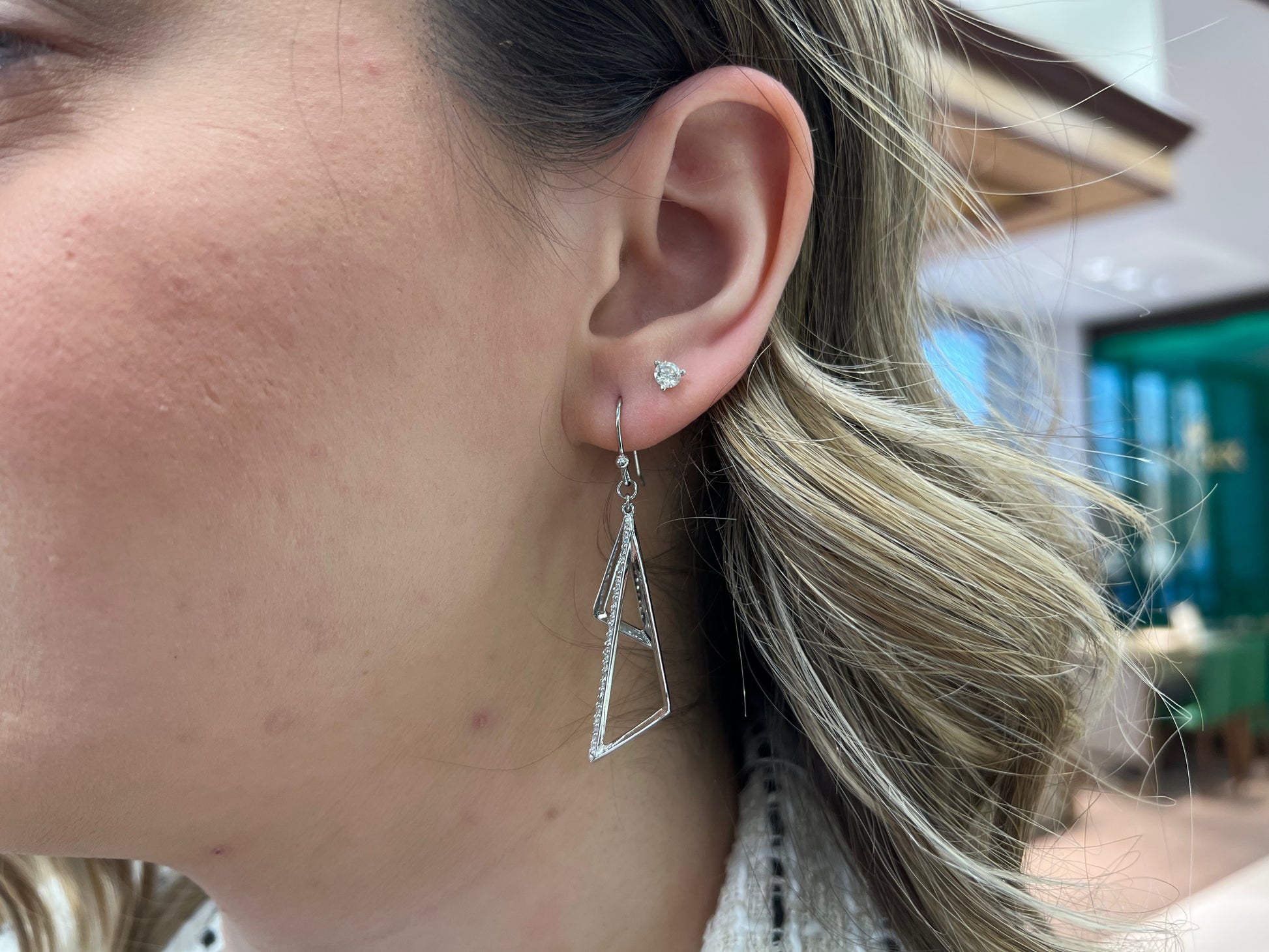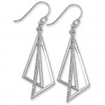 Sterling Silver Dangling Elongated Double Triangle Design With Czs, Shephard Hooks