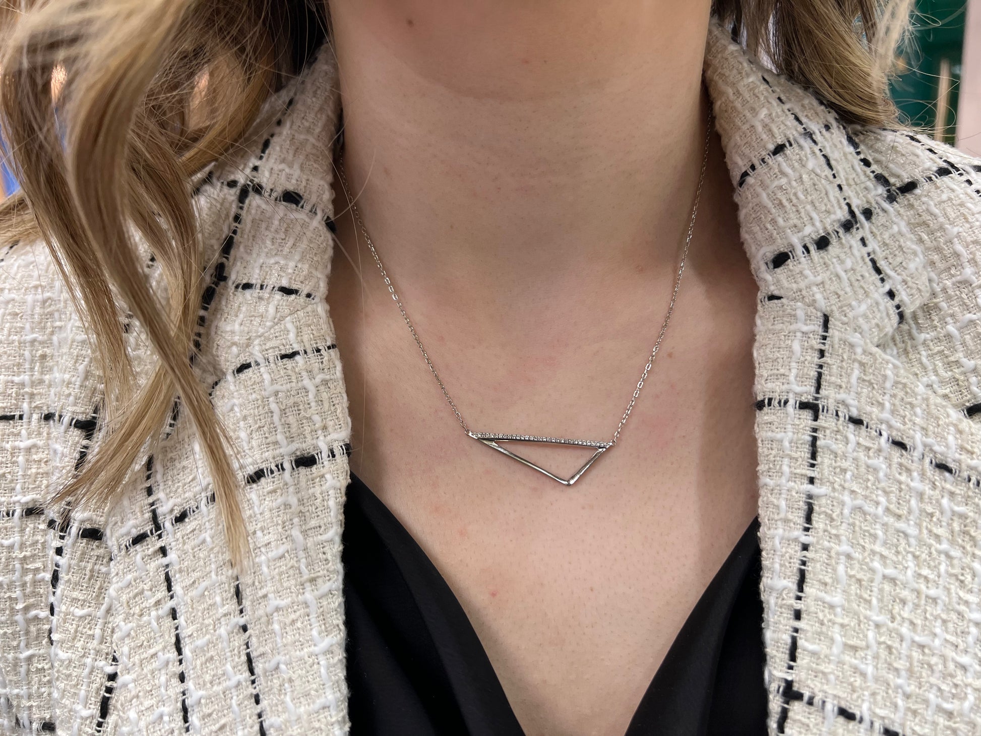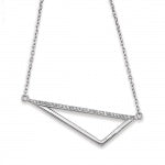 Sterling Silver And Cz, East/West, Geometric Pendant On A Stationary, Adjustable 16-18 Inch, Cable Chain With A Spring Ring Style Clasp.