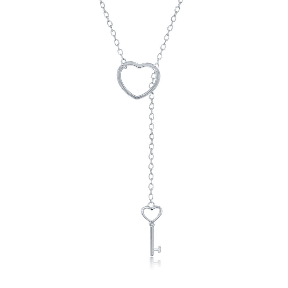 Sterling Silver Open Heart With Hanging Key Adjustable Lariat Bolo Necklace
