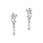 .925 Silver Post Earrings With Clusters Of Round, Oval, Pear, Marquise, Rectangle Shape Clear Cz's 39.75Mm H X 12.50Mm W