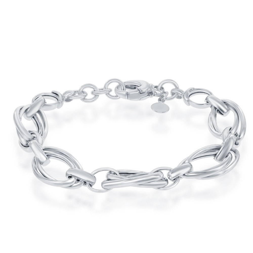 Sterling Silver High Polished Interlocking Oval Bracelet, 7.5-8.5 Inches