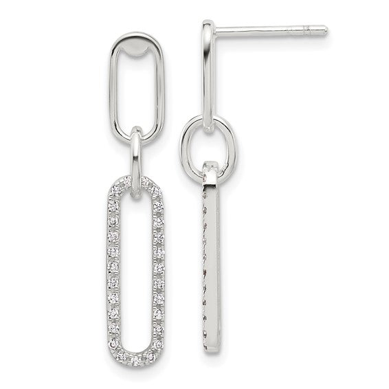Sterling Silver Paperclip Dangle Earrings With Czs, Post Backs