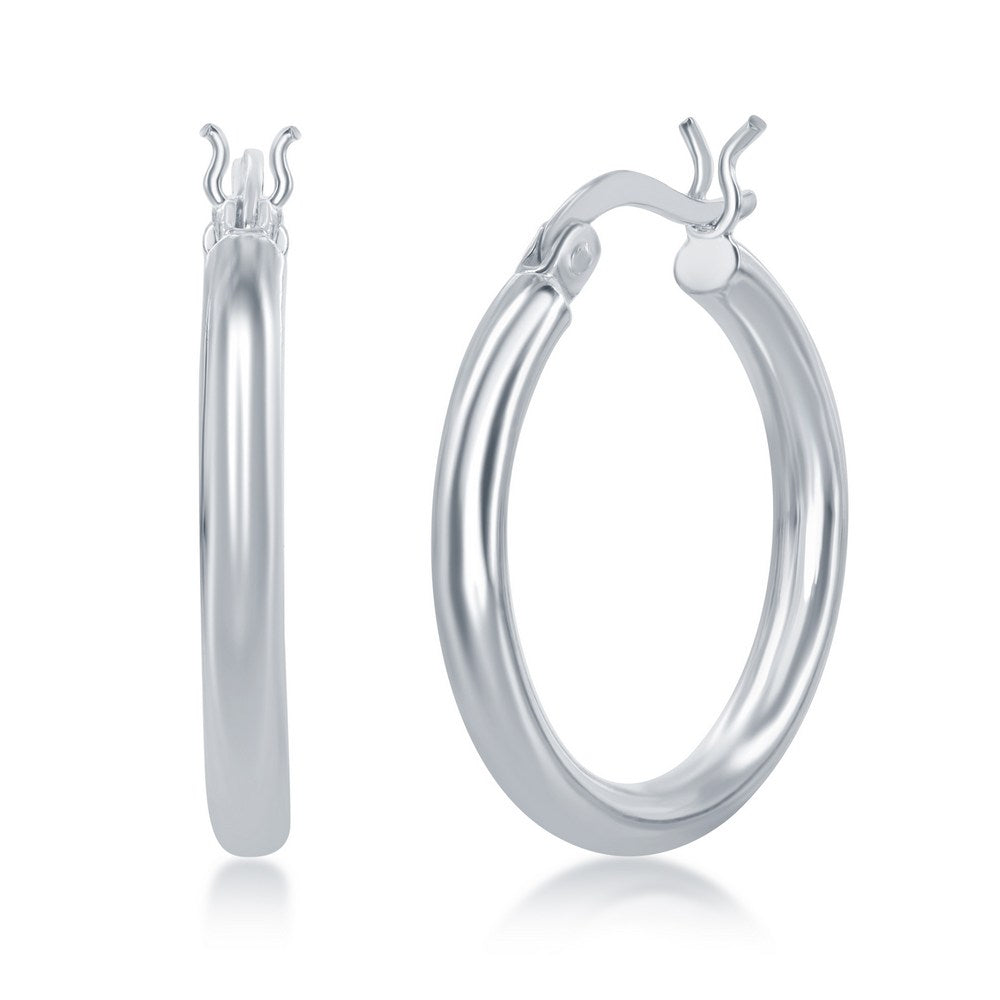 Sterling Silver 3X25mm High-Polished Hoop Earrings - Rhodium Plated