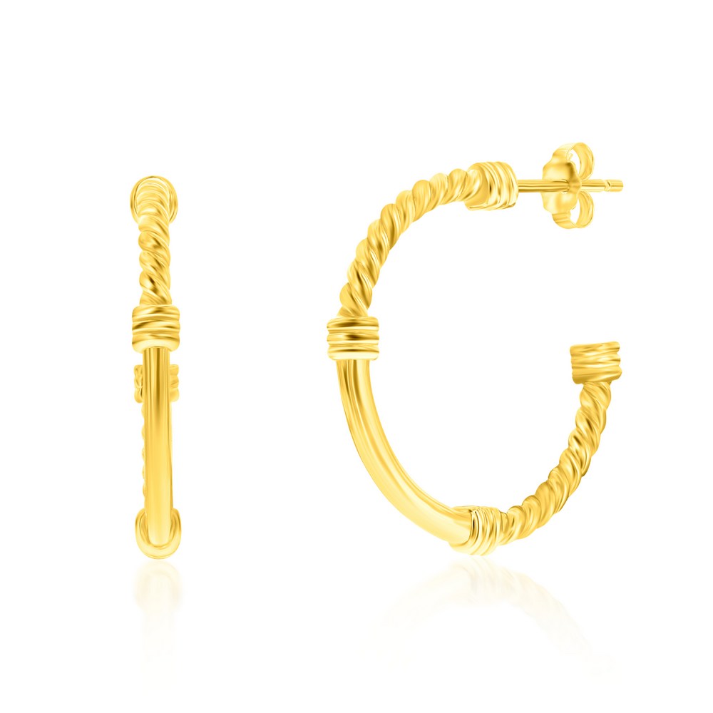 Sterling Silver 24Mm Rope & Polished Half Hoop Earrings - Gold Plated