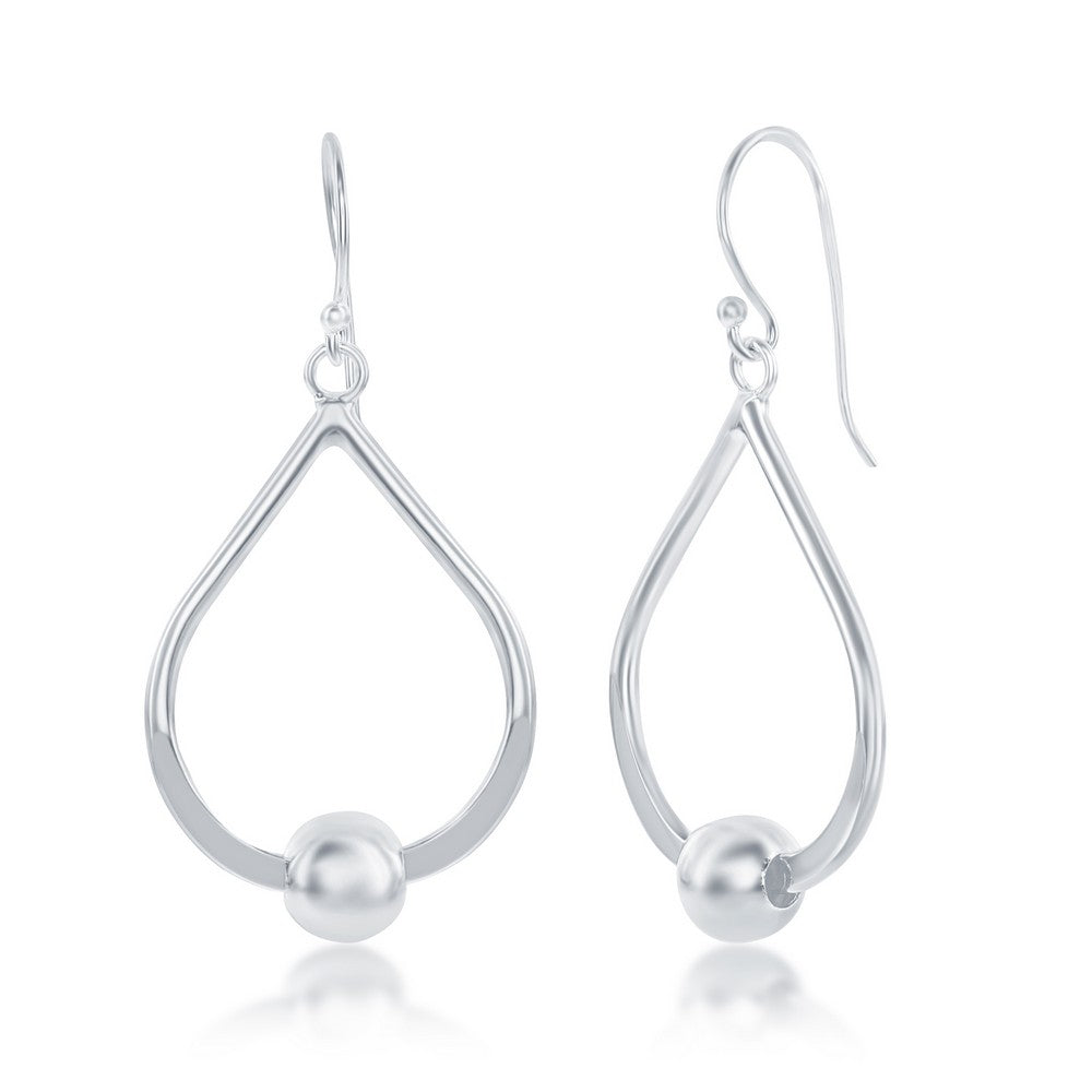 Sterling Silver Open Tear Shape W/ Bead Earrings