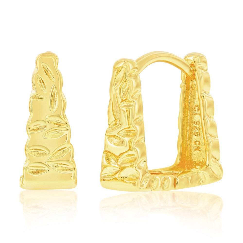 Sterling Silver and Gold Plated, Textured Square Hoop Earrings