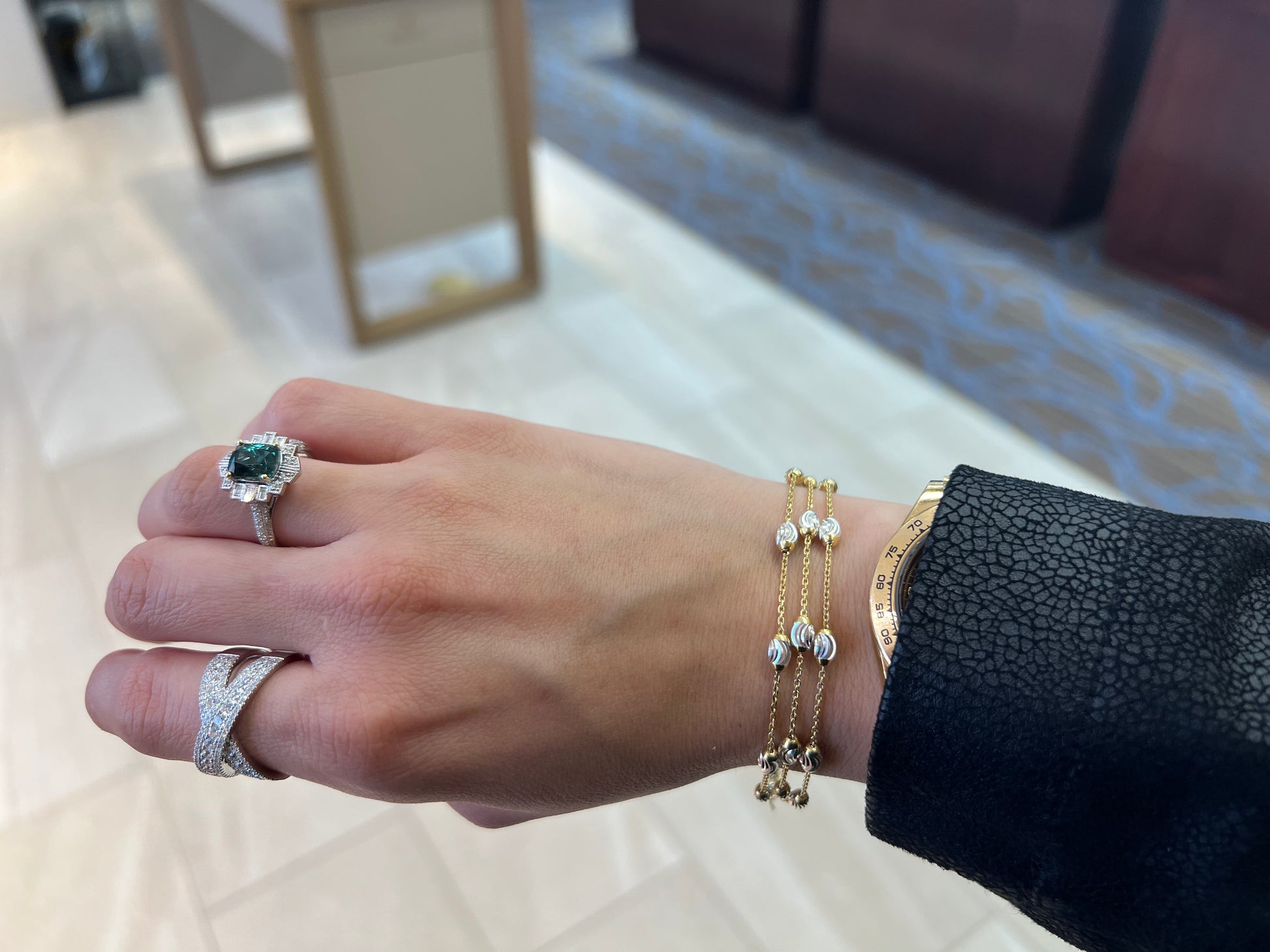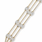 Sterling Silver And Yellow Plated, Adjustable, 8 Inch, Triple Strand Bracelet With Oval, Faceted Bead Stations And A Lobster Style Clasp.