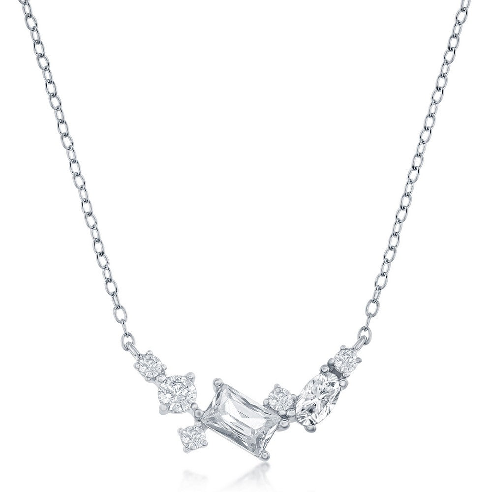Sterling Silver, Multi-Shaped Cz Necklace On An Adjustable 16-18 Inch Chain With A Lobster Style Clasp