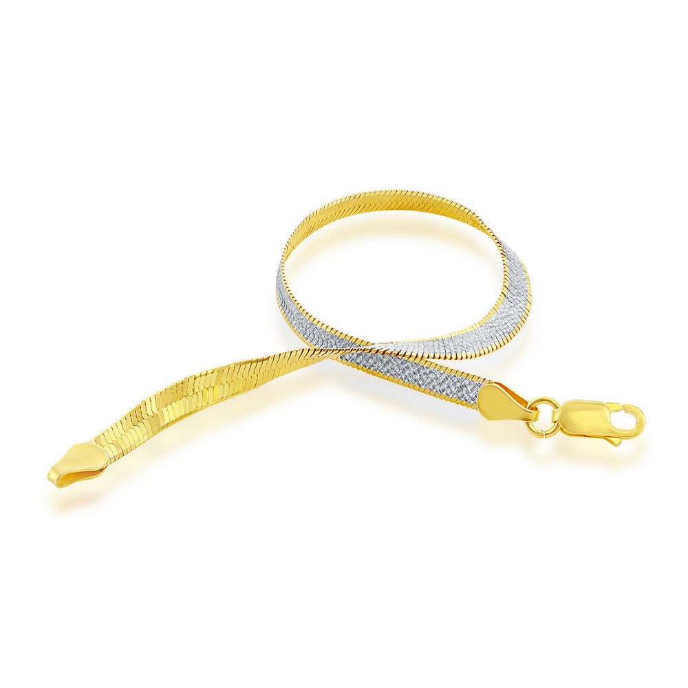 Sterling Silver And Gold Plated, 4Mm Reversible Herringbone Bracelet