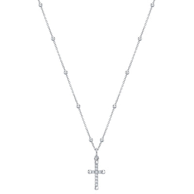 Shy Creation, 14 karat white gold, diamond cross necklace, with a beaded design chain, 0.08cttw. G-H, SI1-SI2
