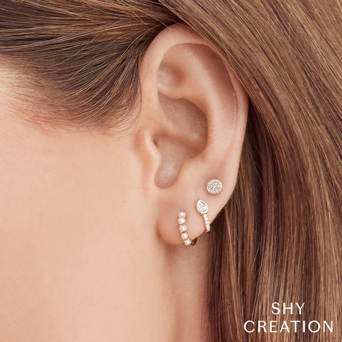 Shy Creation, 14 Karat Yellow Gold, Pave Diamond Circle Earrings, 0.07Cttw. G-H, Si