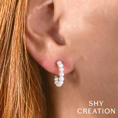 Shy Creation Small Pearl Hoops